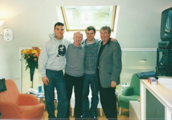 Rock DJ‘ Robbie Wiliams with John, Guy Chambers, and former EMI Deputy MD Tom Bradley